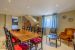 On the lower level, a warm atmosphere for the dining area and its fully equipped kitchen with pantry/laundry room.