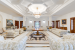The garage holds six vehicles, and landscaped gardens feature terraces, lemon and olive trees, and an outdoor reception area with piano.