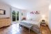 On the garden level, two bedrooms with private terraces are accompanied by two bathrooms, WC, a laundry area, and a storage room.