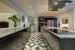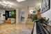 A spacious entrance with a closet, a laundry room, a ski room with boot dryers, and a hallway leading to a magnificent living room with a large dining area and an open-plan kitchen featuring a central island.