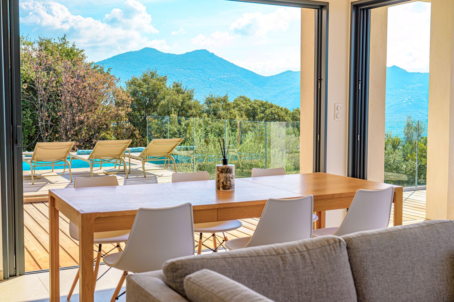 Anchored in the Gulf of Valinco, this architect-designed villa with clean lines reveals a haven of peace overlooking the Propriano region.