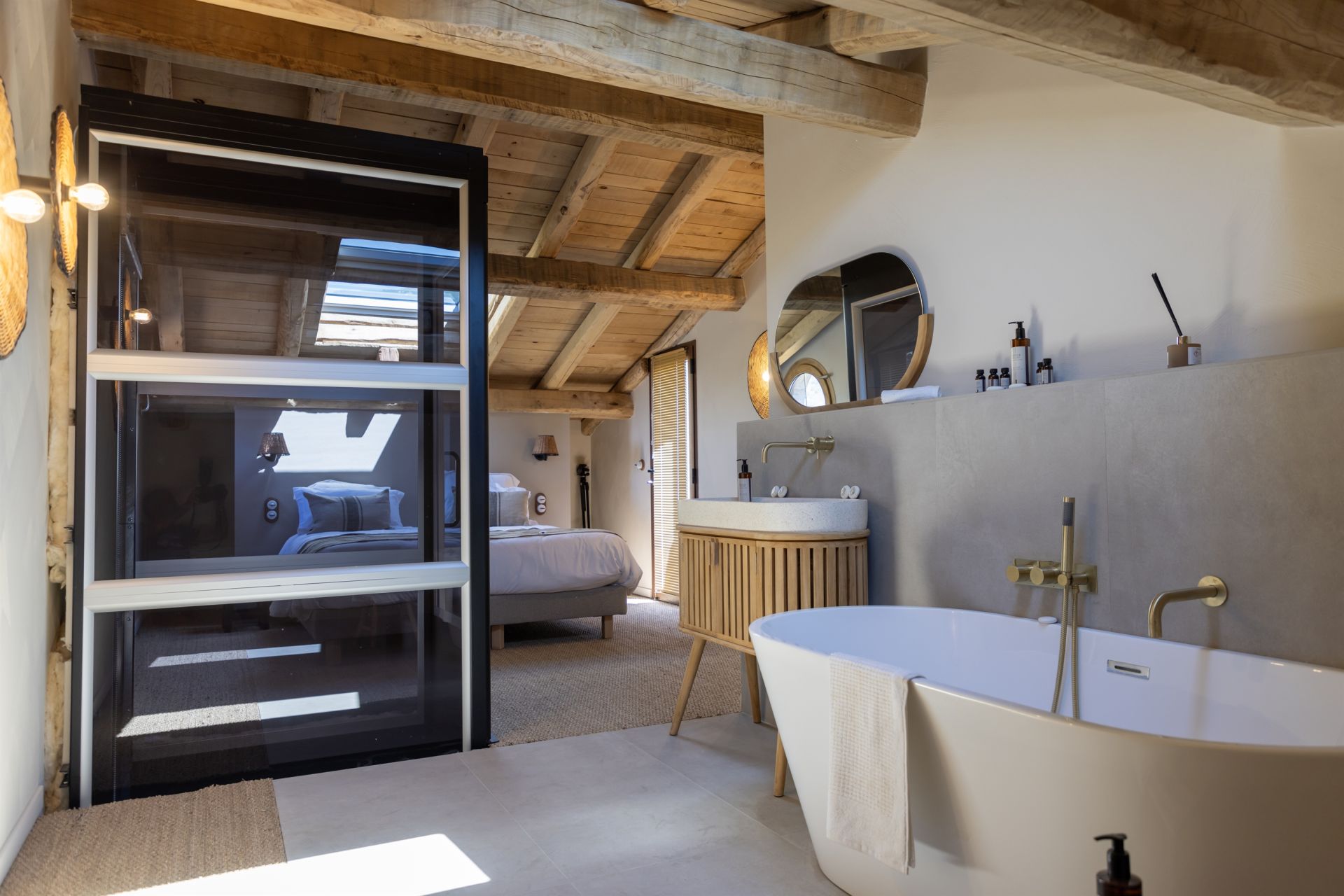 The charm of the countryside and the sea emanates from this warm, atypical address, with 2 bedrooms on the second floor, accessible by elevator, both with en suite shower/WC and opening onto a sunny terrace.