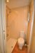 Entrance hall with opened kitchen, living room, a large bedroom with cupboards, bathroom and balcony, second smaller bedroom with shower room and toilets.