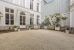 Access to the upper floors is via an elegant staircase with a stunning skylight designed by architect Carlier in the 1980s. On the first floor, the garden side hosts a magnificent master suite with a spacious bedroom, dressing room, and a complete bathroom connected to a second bedroom overlooking the garden. The courtyard side has two beautiful bedrooms, each with its private bathroom. Most floors are adorned with beautiful solid elm parquet.