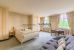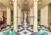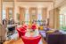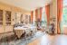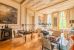 The main mansion, at the back of the courtyard and adorned with a beautiful glass canopy, is spread over three levels with a pleasant layout. The entrance is through a spacious blue stone hall that opens to the right onto a large living room with finely gilded Louis XVI woodwork, featuring a Mondrian-inspired rhythm of great quality. On the garden side, a second living room with a wood-burning fireplace and a spacious dining room offer a peaceful view of the terrace and garden. The individual kitchen, located on the courtyard side, is equipped and decorated with old tiles, reflecting the house's origins. All reception rooms feature superb herringbone oak parquet floors and impressive ceiling heights (4.20 meters).