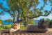 Surrounded by a superb and luxuriant landscaped garden bordering the beach, the space is composed in particular of a grass city stadium, a synthetic putter practice and a petanque court.
