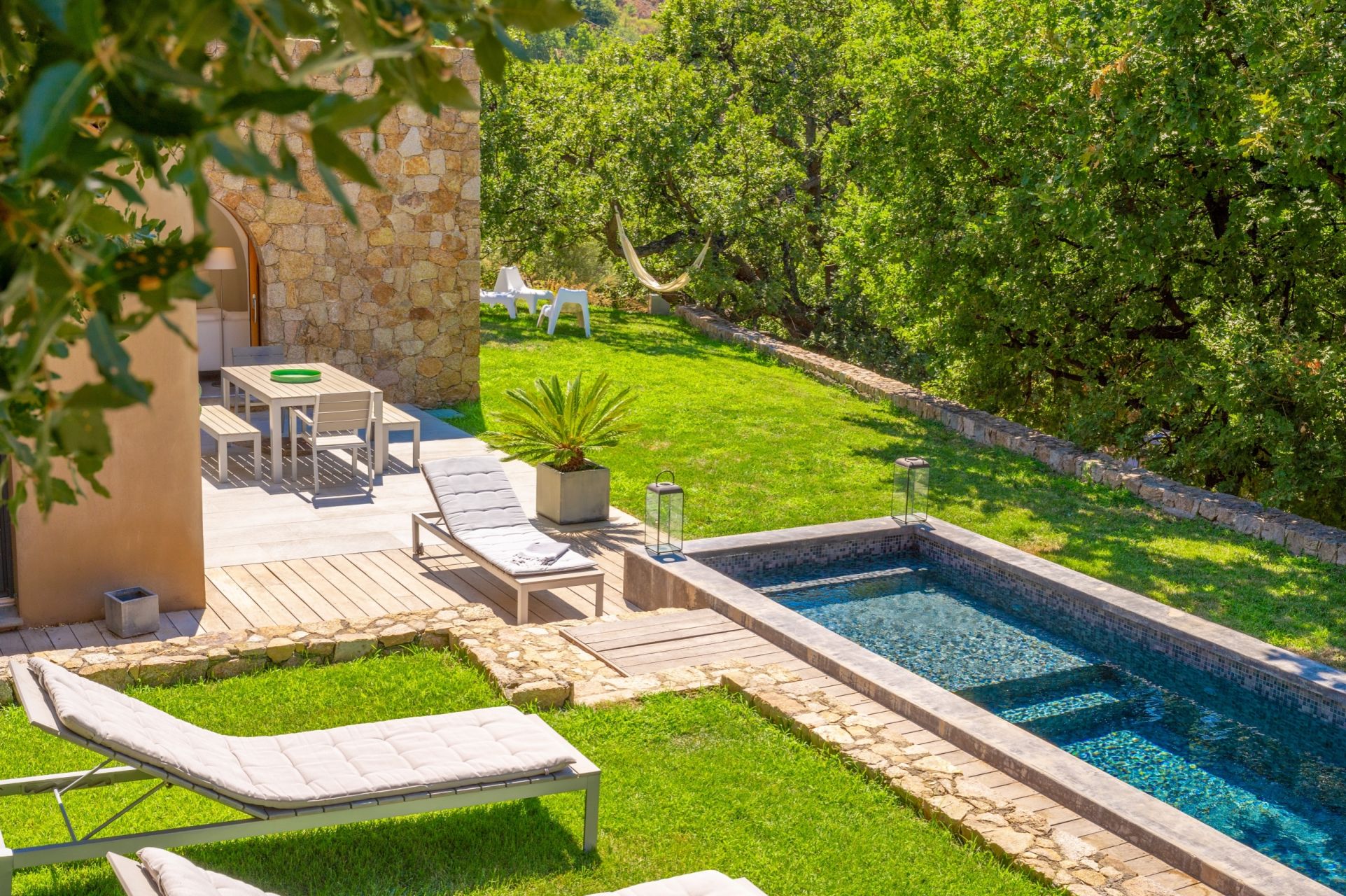 The 2500 m2 garden distributes sitting areas throughout the property and the swimming pool offers a very pleasant cool area.