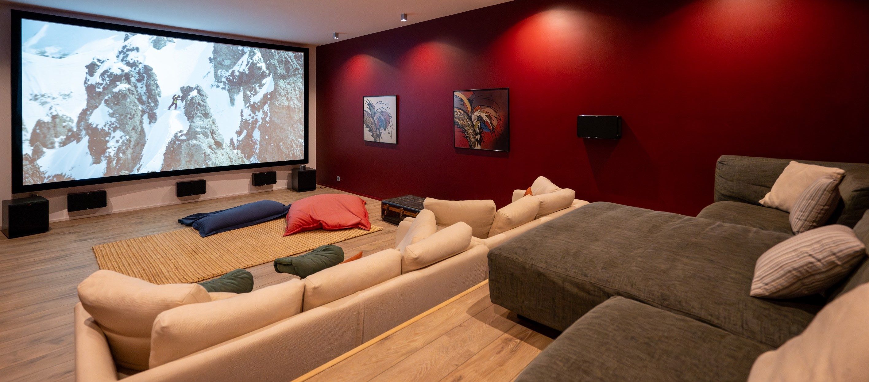 From the kitchen, a corridor leads to the cinema, and the two last bedrooms with shower room and bathroom.