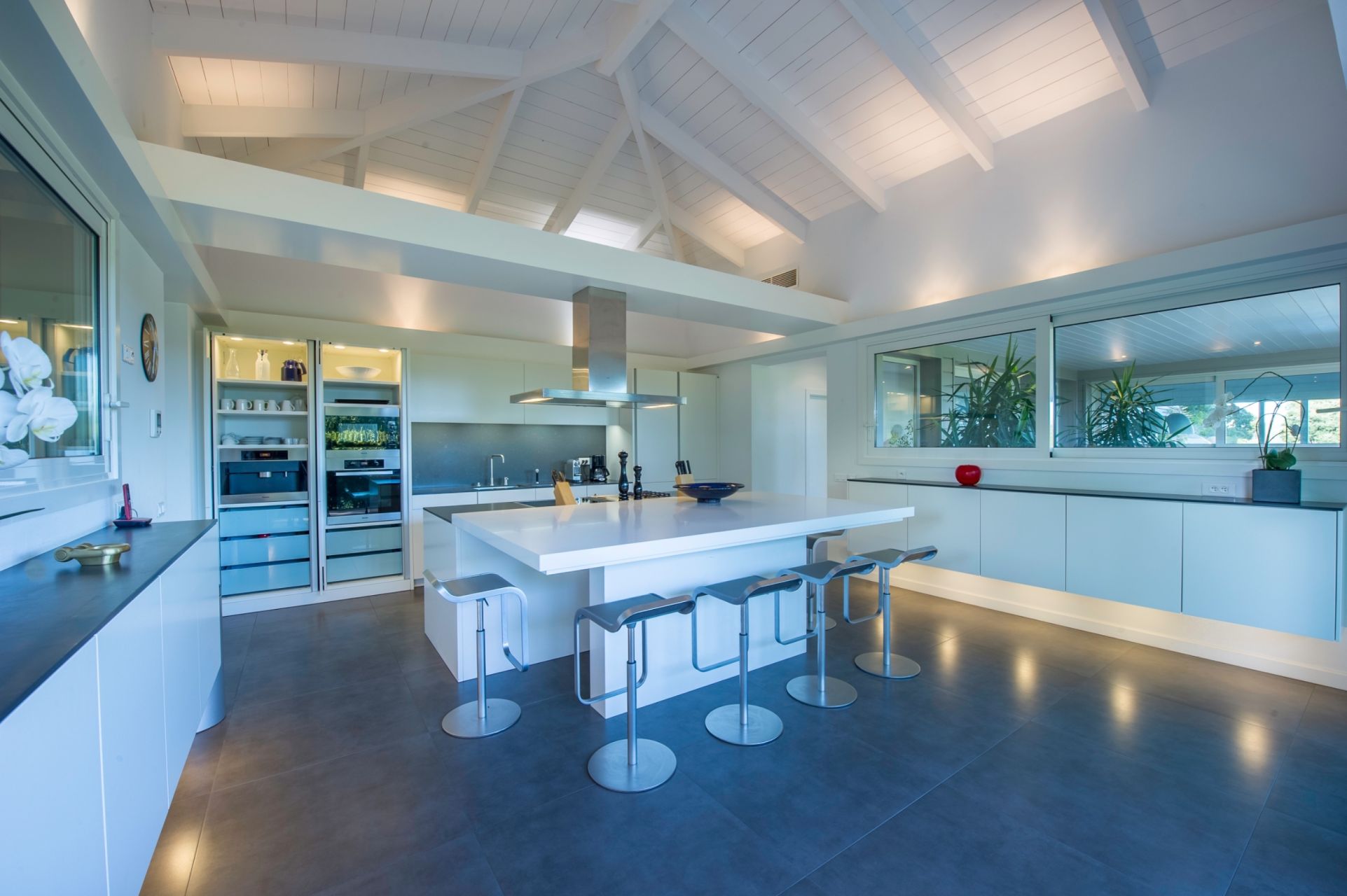 The entrance hall leads to a vast reception room opening onto a very large terrace with garden furniture facing the sea.