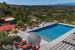 The carefully landscaped exteriors extend the experience in harmony with the natural environment. The landscaped Mediterranean garden is home to a pétanque court and a golf practice area with putting green for amateurs. The generously-sized heated swimming pool (12 m x 6 m) features an outdoor shower, while the Jacuzzi invites you to enjoy moments of total relaxation in the heart of this enchanting setting. The pool house, a true place of conviviality, offers an outdoor kitchen equipped with bar, plancha and refrigerator, as well as a shaded dining room where sixteen guests can share meals in a peaceful atmosphere.