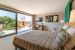 At night, the villa offers elegant bedrooms and suites on both levels. On the main level, the Master Bedroom, a veritable sanctuary of comfort, opens onto the surrounding countryside and features an en-suite bathroom with bath, shower and double basins. On the lower level, accessible by elevator or from the outside, four luminous suites each offer a privileged view of the garden or nature, with private terraces, air-conditioning and finely-finished en-suite bathrooms. A dedicated staff room with its own bathroom completes the space, guaranteeing discretion and logistical comfort.