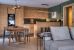 The living area is bright and organized around a fireplace and a fully equipped open-plan kitchen. It’s an ideal space to share moments in a warm, relaxed atmosphere.