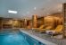 Ground Floor: A wellness area designed for relaxation, featuring an indoor swimming pool, fitness room, sauna, and massage room. For entertainment, a cinema room, a billiard room, and a children's bedroom, convertible into a playroom, are available. A ski room and a double garage complete this level.