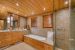 The chalet’s basement is dedicated to entertainment and relaxation. There are guest toilets, a cinema room for private screenings, and a massage room. The wellness area is particularly impressive, with a bar, a pool table, a TV with games, a pool, a gym, a jacuzzi, and a shower. Two additional double bedrooms, sharing a common bathroom with a shower, sink, and toilet, are also accessible on this level. A laundry room and an emergency exit complete this level.