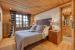 On the first floor, the chalet offers four additional double bedrooms, each equipped with a television and a dressing room. The second bedroom has a 140 cm bed, while the third, fourth, and fifth bedrooms have 180 cm beds. Each bedroom has its own bathroom with a shower, sink, and toilet, while the fourth and fifth bedrooms also include a bathtub. The fourth bedroom features a dressing room with a safe and a study area, providing a comfortable workspace.