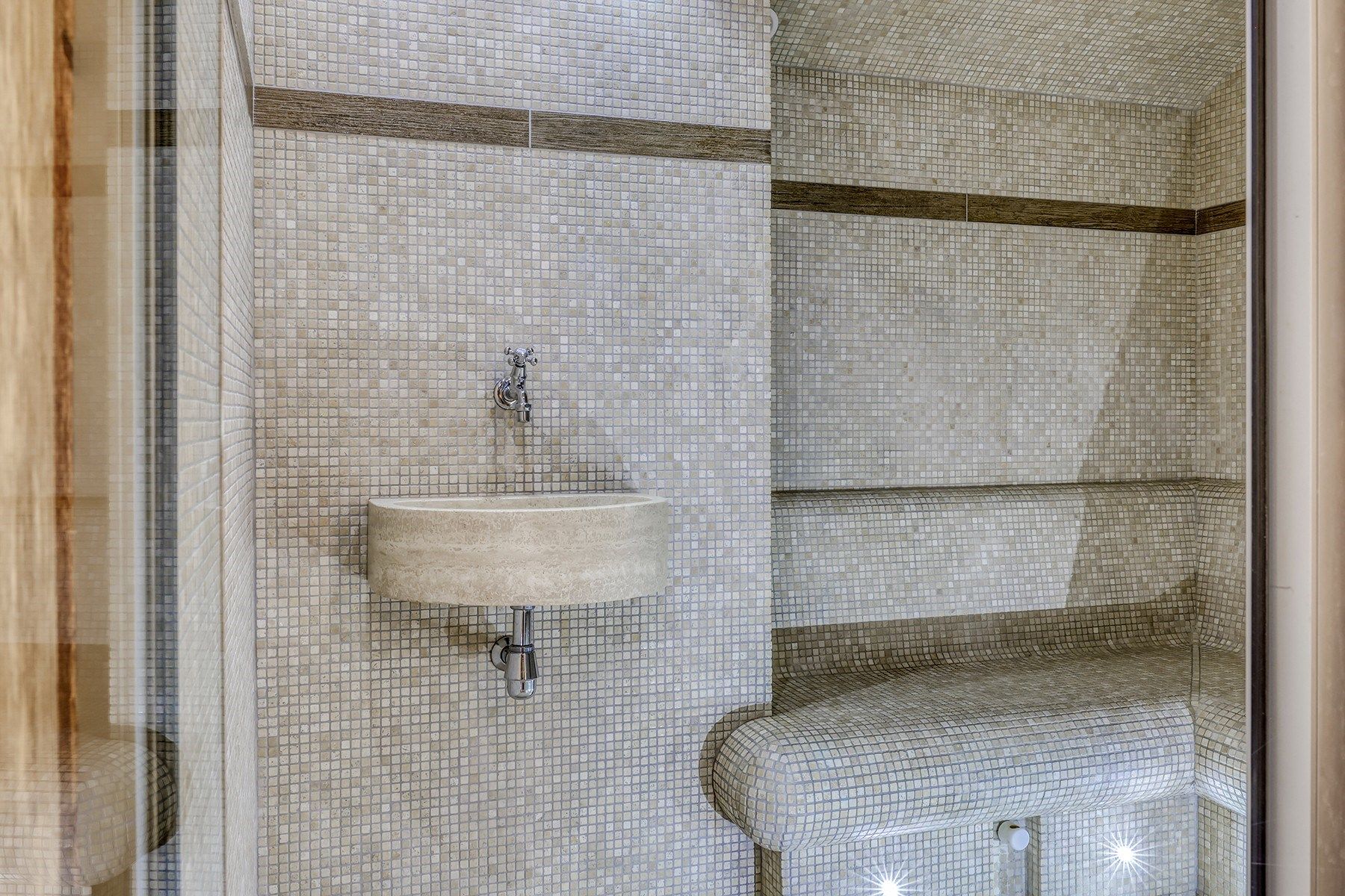 The Grand Chalet offers a sumptuous setting with a spacious bedroom and en-suite bathroom on the ground floor, complemented by a pool, a hammam, a solarium, and a fully equipped skiroom.