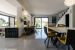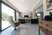 The ground floor features a refined entrance hall leading to the 60 m² living room, which benefits from superb natural light with its multiple glass doors and windows and advantageous aspect, creating a pleasant, soft atmosphere. The kitchen area measures around 22 m², with an adjoining utility room and access to a private patio-style terrace with a magnificent olive tree. The night quarters comprises 2 individual bedrooms with a shared shower room and separate toilet and a full master suite of 45m² with a double dressing room, shower room and toilet, opening onto the terrace.