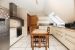 À l’étage, un second salon tout aussi spacieux et lumineux permet de créer un espace de vie indépendant. Vous y trouverez également une cuisine séparée, trois chambres et une salle de bain.