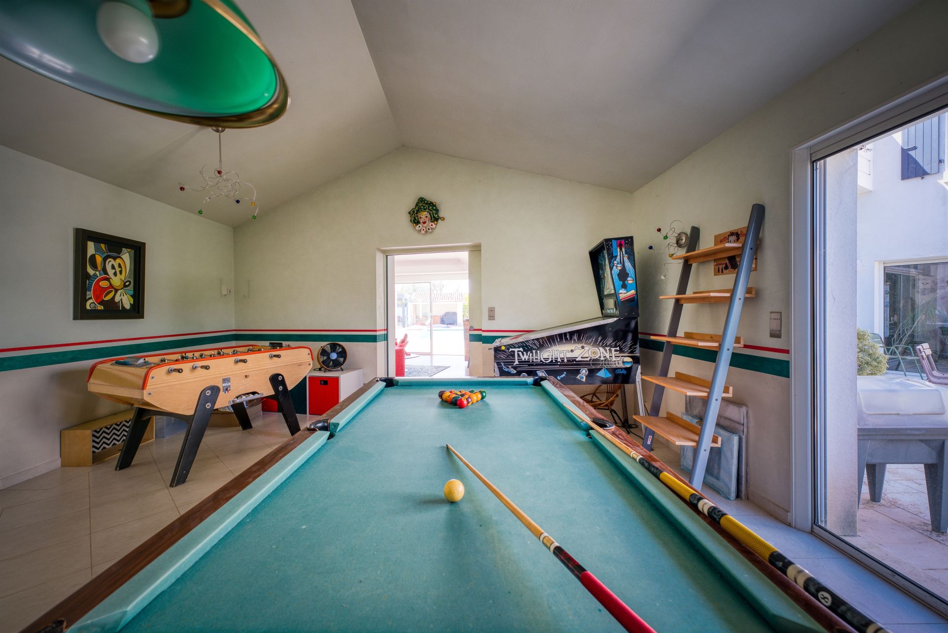 Royan Ile d'Oléron Sotheby's International Realty offers you this intimate and private architect-designed villa of approximately 355 m² of living space and approximately 231 m² of annexes on a plot of 7731 m² including 588 m² detachable and buildable. Located at the gates of the village of Dolus d'Oléron, shops and services are within walking distance. The beaches are easily accessible by bike: 15 minutes for the west coast, the Ocean and its waves; 10 minutes to Pertuis and its breathtaking view of Fort Boyard, the Ile d'Aix and the coasts of Charente Maritime. By car, you can reach the Bridge in 10 minutes. Facing the sun, on a park with swimming pool it has various terraces, a large pergola with summer kitchen, a putting green and a bunker for golf enthusiasts. Two double garages, a double carport for vehicles. An independent studio and a reception courtyard. The ground floor of the villa, designed by an interior designer, offers living on one level. The entrance hall overlooked by a glass roof leads to a living room with through-light and fireplace, a remarkably equipped dining kitchen, an office and a parental apartment (bedroom, dressing room, bathroom and shower, gym, hammam) As an extension of the living room, a games room with billiards, table football and pinball opening onto the patio and a second living room with fireplace whose restored old parquet floor comes from an old Charente residence. This room can allow a 5th bedroom. The floor dedicated to children has a landing room, now a games room, three bedrooms, one with a private bathroom and a bathroom + shower. An independent apartment will allow you to receive family and friends or to accommodate a caretaker or an au pair. It consists of a living room, a kitchenette, a bathroom and a mezzanine bed. It opens onto an independent garden space allowing an intimate life independent of the villa.