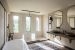 Bedroom 1: Air-conditioned, Double bed 200 x 200, TV, Large dressing room, Bathroom with double sink, bath, shower, toilet, Access to the pool terrace