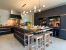 Spanning 550 m², it includes a vast living room with bay windows opening onto the terrace and outdoor lounge, a TV lounge and a cocktail bar area. On the ground floor, there's also an office overlooking the garden, the dining room and the beautiful, fully-equipped kitchen with Lacanche piano, which opens onto a covered terrace with outdoor dining area. Summer and winter alike, the beautiful indoor and outdoor spaces offer a comfortable gathering space.