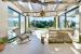 Built on one level, the house includes a light-filled living room with fireplace and piano on the lounge side, and a dining area for 8 to 10 people on the kitchen side. The two terraces, one to the north and the other to the south, feature outdoor seating and dining areas, perfect for lunching in the shade or enjoying the sunshine.