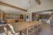 Double living room with fireplace and TV on one side, and Dining room for 10/12 people with fully equipped kitchen and central island on the other.