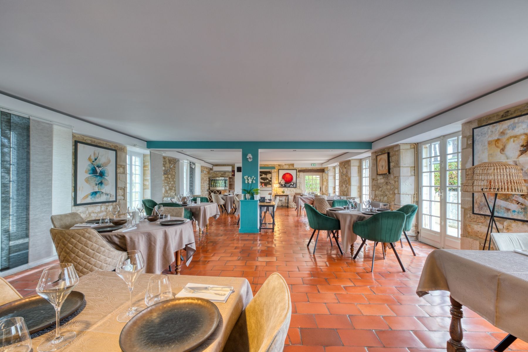 It consists of a dining room of 90 m2, various lounges, 10 charming bedrooms all with a shower room or a private bathroom, a professional kitchen, various adjoining rooms, a pretty company house with two bedrooms