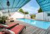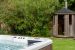 A relaxation area with a semi-covered heated pool (12x5.5 m), an exotic wood terrace, a spa, and a Finnish sauna.