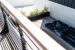 Upstairs, accessible by a stylish staircase or private elevator, you’ll find three additional bedrooms — one of which includes its own en-suite bathroom and dressing room. Each bedroom opens onto a generous wooden terrace, ideal for soaking up the coastal ambiance. A shared shower room completes the upper floor.