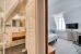 The sun-filled living room, enhanced by a magnificent bow window, opens onto a warm dining area and a perfectly equipped open kitchen. A discreet laundry room and guest WC complete this level.