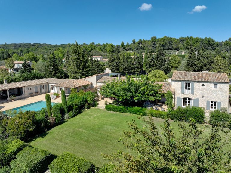 Elegant mas provençale with outbuildings - dominant view of the southern Alpilles mountains