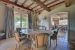 With over 260m² of living space, the main farmhouse, almost all of which is on one level, includes a double living room with fireplace, a dining room, a fully equipped kitchen with two laundry rooms, plenty of storage space, and an office adorned with carefully crafted woodwork. On the night side, a large ground-floor suite of over 40m² with bedroom, shower room, dressing room and adjoining terrace, and 2 upstairs suites, both with their own shower room and walk-in closet.