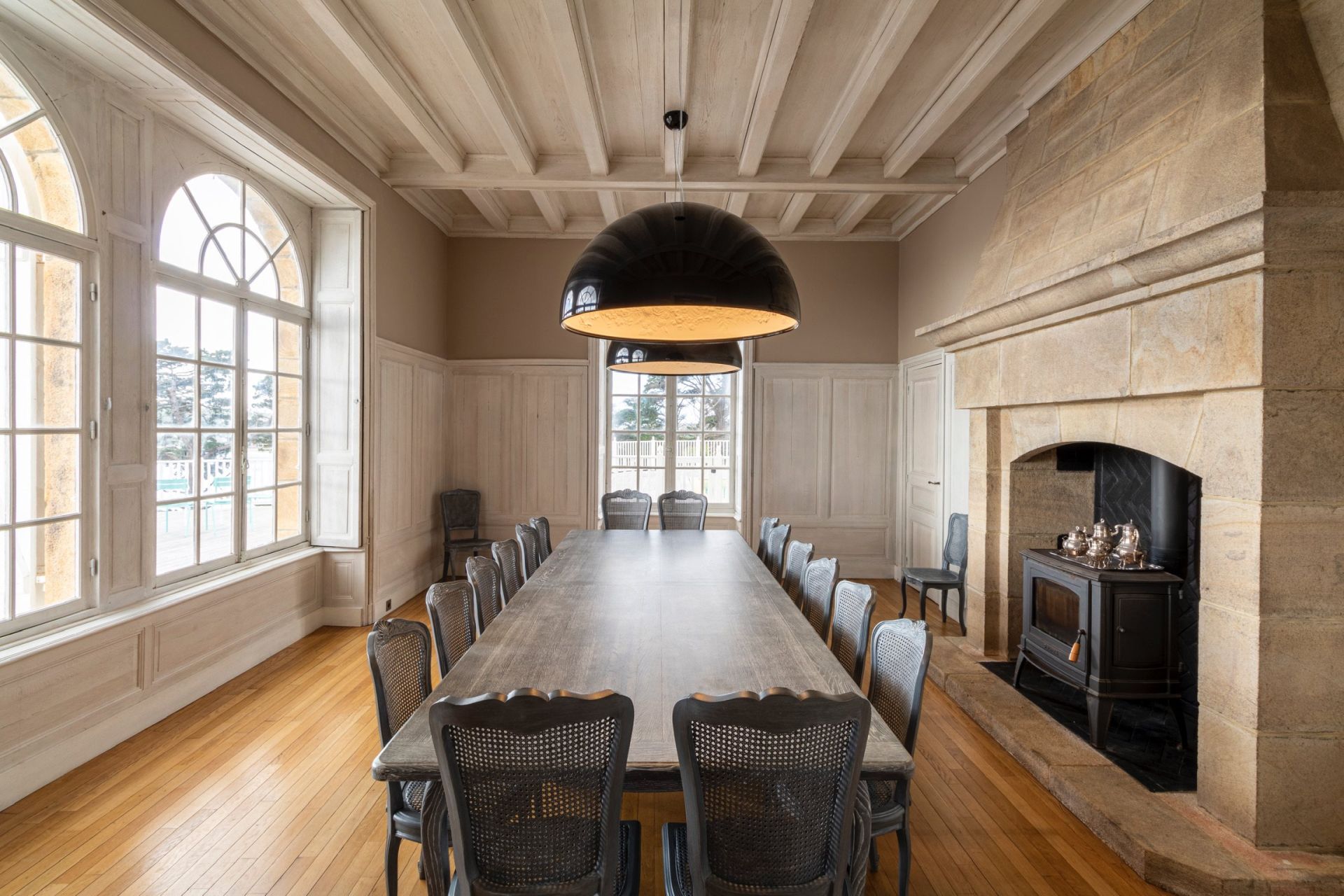 Entièrement rénové, le manoir bénéficie de beaux volumes, d'un salon TV, de 14 chambres et de 8 salles de bain pour accueillir un maximum de 15 personnes.