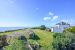 A l’étage, une double réception lumineuse avec espace cuisine équipée et aménagée ouvrant sur la terrasse sud et l’océan, trois chambres dont une vue mer se partagent une vaste salle de bains avec douche.
