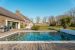 L’extérieur est tout aussi attrayant avec une piscine chauffée et une incroyable vue dégagée sur des paddocks clos. Les équipements équestres incluent un bâtiment avec trois boxes, une sellerie, un espace de stockage, et une carrière sur sable de Carnac de 40m X 25m.