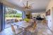 Sur un terrain de 5 000 m², cette maison lumineuse de 380 m² habitables offre de superbes volumes : un séjour-salon-cheminée de 100 m² ouvert sur la mer, une cuisine conviviale, une bibliothèque pour se poser. Cinq chambres dont deux vastes suites avec dressing et salle de bains, et une suite indépendante dans la maison d’amis avec terrasse vue mer. Un total de 6 chambres et 5 salles de bains.