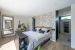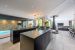 Cette villa de luxe aux vastes volumes offre en rez-de-chaussée une réception avec de larges baies ouvertes sur la terrasse aménagée et le jardin paysager, une cuisine totalement ouverte sur la réception et la piscine d’intérieur chauffée et sécurisée toute l’année