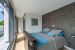 (10mx3mx1,20m), une suite avec salle de bains et dressing ; un sauna dédié au bien-être est à votre disposition. À l’étage, la villa propose trois vastes suites prestigieuses avec salles de bains ou salles d’eau et dressing, une pièce de détente ; l’ensemble ouvrant sur une vaste terrasse aménagée.
