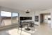 Le vaste séjour s’ouvre sur une cuisine contemporaine entièrement équipée, offrant un espace convivial et raffiné.