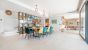 Les espaces de vie sont vastes et lumineux, avec un double salon et une cuisine américaine. Cette dernière comprend une cave à vin, un ilot central, des équipements hauts de gamme et un cellier séparé.