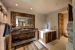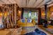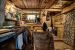 - Un espace de vie ouvert avec une décoration montagnarde sophistiquée, sublimée par des éléments en bois récupéré et des troncs d’arbres provenant de la forêt environnante, créant une ambiance unique.