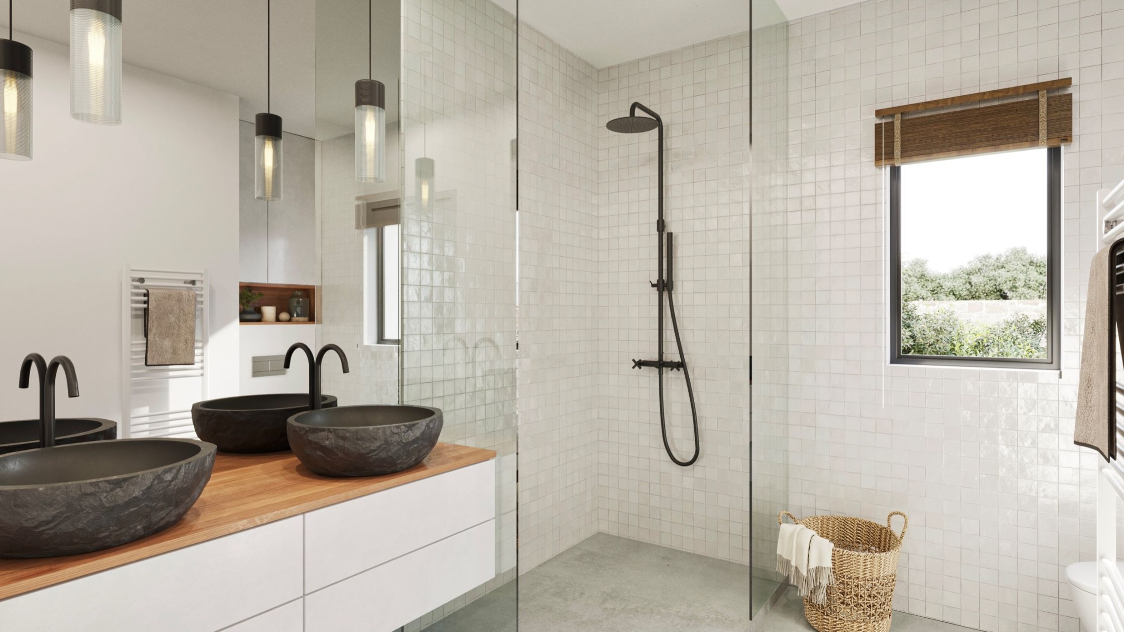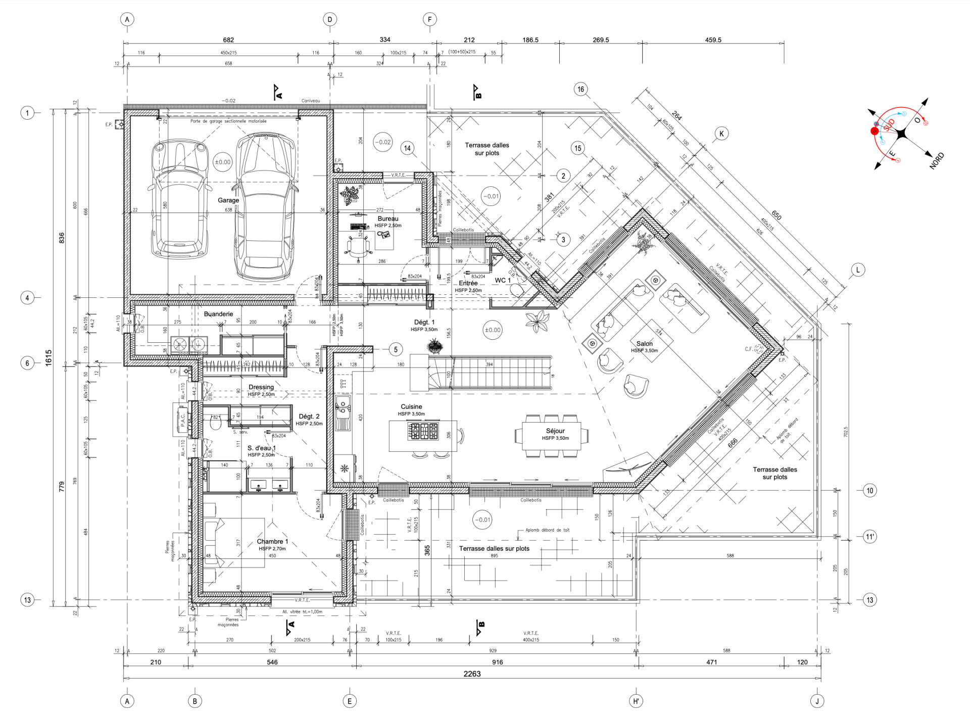 Au rez-de-chaussée : une belle entrée galerie avec penderies et toilettes invités, une vaste réception avec partie salon et espace salle à manger traversante et ouvrant par belles baies vitrées sur terrasses, une cuisine dite à l'américaine d'un dégagement desservant une pièce cellier/buanderie, une pièce bureau et une suite parentale avec dressing, chambre ouvrant sur terrasse et salle d’eau avec double vasque, douche et toilettes. Un garage double avec accès direct à la maison vient terminer ce niveau.