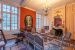 Une fois franchie l’imposante porte cochère , vous découvrirez un vaste vestibule d’entrée avec une grande porte à double battant ouvrant sur la cour intérieure, à sa gauche un dégagement et son escalier d’honneur avec une jolie main courante en fer forgé, dans son prolongement , un séjour à restaurer et à sa droite une cuisine typique avec des éléments anciens conservés (poutres et solives, sol en pierre du Bessin, une cheminée en pierre), dans l’aile droite, un petit bureau intimiste avec une très belle cheminée en pierre très stylée, des espaces de desserte dont un escalier de service, des toilettes invités, une véranda originale orientée à l’Est et donnant sur la cour, un très agréable salon et son bow-window avec une cheminée travaillée et un joli plafond à la Française, le tout offrant une ambiance « so british ».