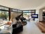 L'espace donnant côté terrasse propose un vaste séjour-salon agrémenté d'une cheminée moderne et offrant plusieurs ambiances. Sur ce même niveau, nous retrouvons, de manière isolée, une première suite avec dressing et salle d'eau et des toilettes invités.
