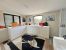 Au rez-de-chaussée, l"espace de vie principale est composé d'une entrée avec un espace bureau semi-ouvert ayant un accès indépendant et donnant sur une grande salle à manger elle même ouverte sur une magnifique cuisine aménagée et équipée.