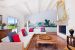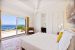 À la sonorité des vagues sur le rivage, la cuisine équipée et le salon central s’ouvrent sur une terrasse spacieuse et proposent des espaces petits déjeuners et détente sur fond bleu d’horizon.