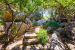 Le jardin paysager offre un écrin fleuri et sublime la vie extérieure : piscine à débordement, fontaine de granit, salon de farniente sous voile et table de réception ombragée.