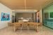 Un vaste espace de vie s'articule tout en convivialité autour du séjour et de la cuisine américaine parfaitement équipée, le tout ouvert sur le large deck piscine, son bar, ses coins salons et dinatoires extérieurs.
