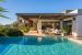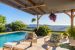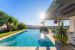 À l’extérieur, le jardin aménagé abrite une vaste terrasse et une piscine, le tout offrant une vue panoramique à couper le souffle. Cet espace extérieur invite à la détente et aux réceptions en toute tranquillité.